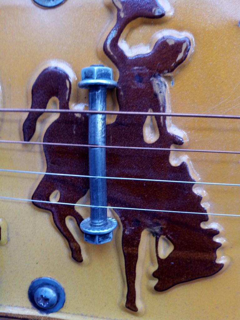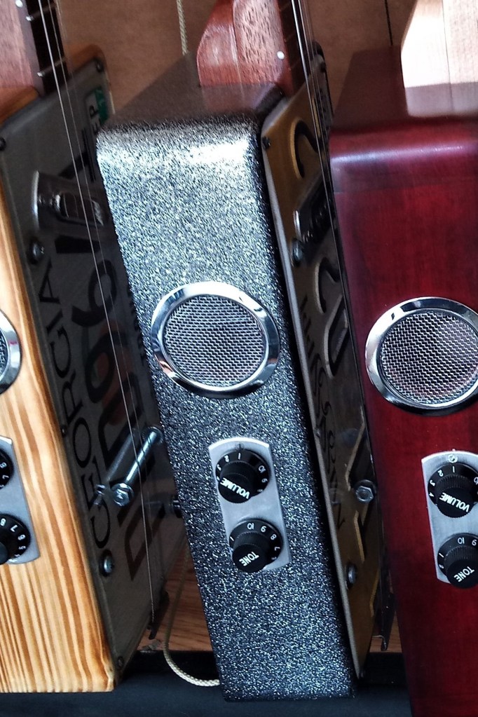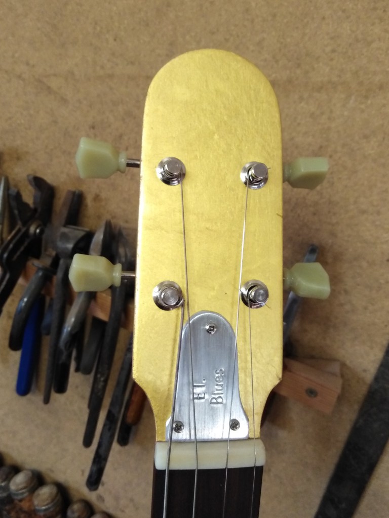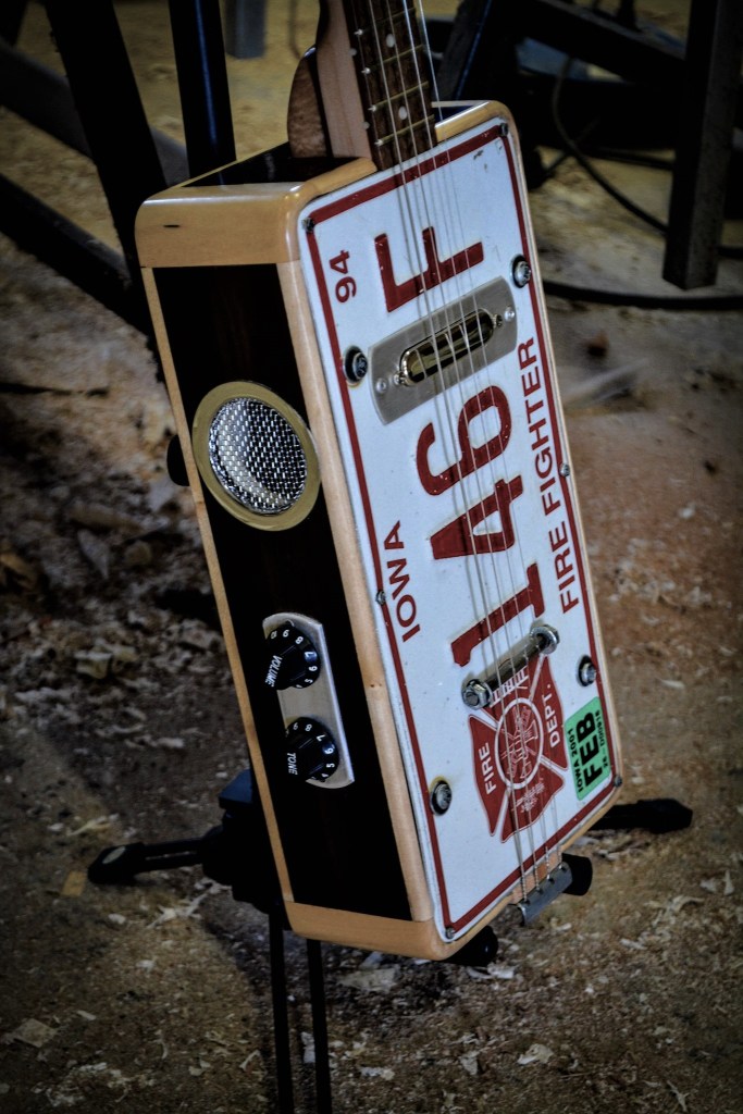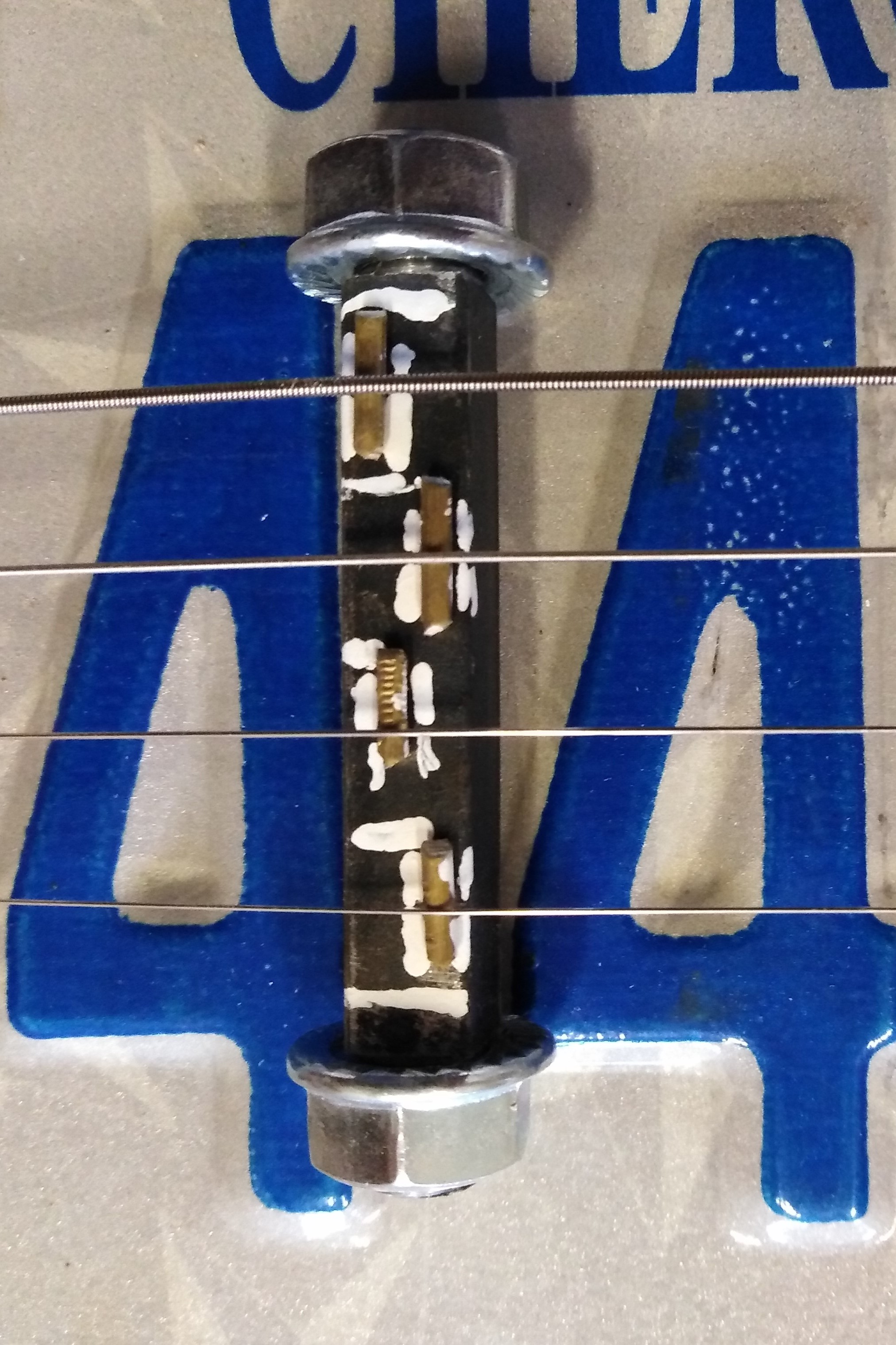 - micro électromagnétique 4 plots spécial Cigar Box Guitar avec réglage de volume et de tonalité, à brancher sur toutes sortes d’amplis pour un son plus gras voire très saturé idéal pour jouer du rock, du métal…